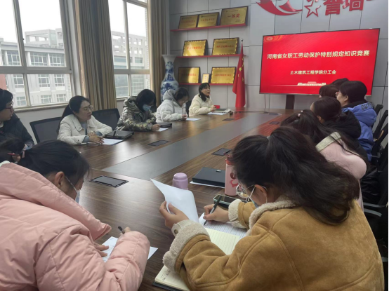 为持续深入地宣传贯彻《河南省女职工劳动保护特别规定》,根据校工会有关精神,加大妇女权益保障法宣传、普及的深度与广度,组织开展了分工会竞赛活动,进一步帮助她们提高法律素质,增强法律意识和能力。