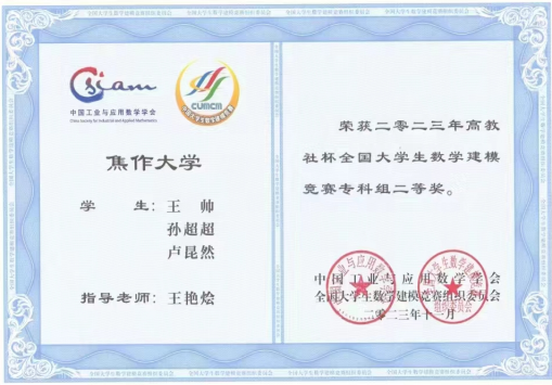 2023年“高教社杯”全国老员工数学建模竞赛圆满结束,河南赛区有88所院校的2872个代表队参赛。公司yl6809永利王帅同学在指导教师王艳烩的指导下表现出色,最终取得国家二等奖的优异成绩。