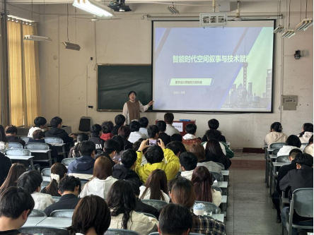 为深化数字技术与设计教育的深度融合,探讨智能时代空间叙事的创新路径,2025年4月2日,由yl6809永利弓萍教师主讲的"智能时代空间叙事与技术赋能" 公开教学观摩活动在南校区508教室成功举办。本次活动吸引了建筑装饰工程技术专业和园林工程技术专业的师生共计150余人参与。
