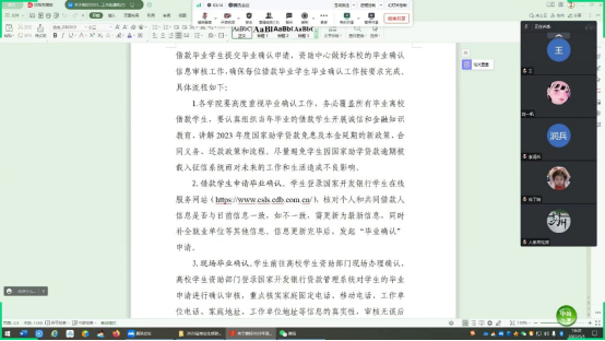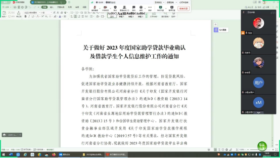 为响应公司公司号召,进一步巩固毕业生的金融教育知识并提高防诈骗意识,2023年5月5日下午,yl6809永利辅导员张波老师根据《关于做好2023年度国家助学贷款毕业确认及借款员工个人信息维护工作的通知》的要求,对助学贷款毕业生开展了一场线上主题会议。