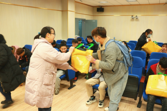 活动过程中,国隆科技股份有限公司主任王思给同学们送出了过冬棉服与笔记本,体现了对同学们的关心与重视。